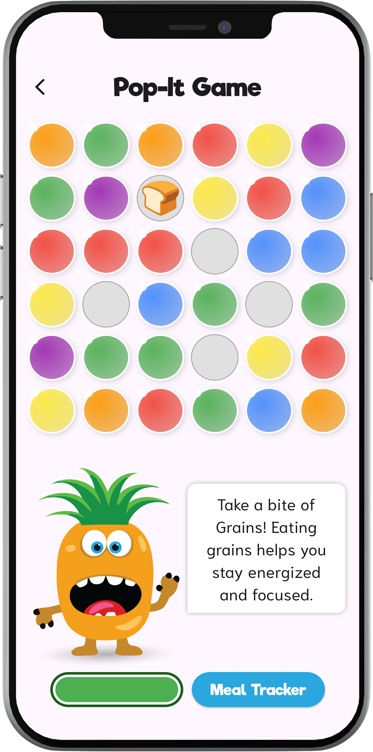 - Pop-It Game - kids pop bubbles to uncover hidden foods, turning every meal into a game of discovery and reward.
